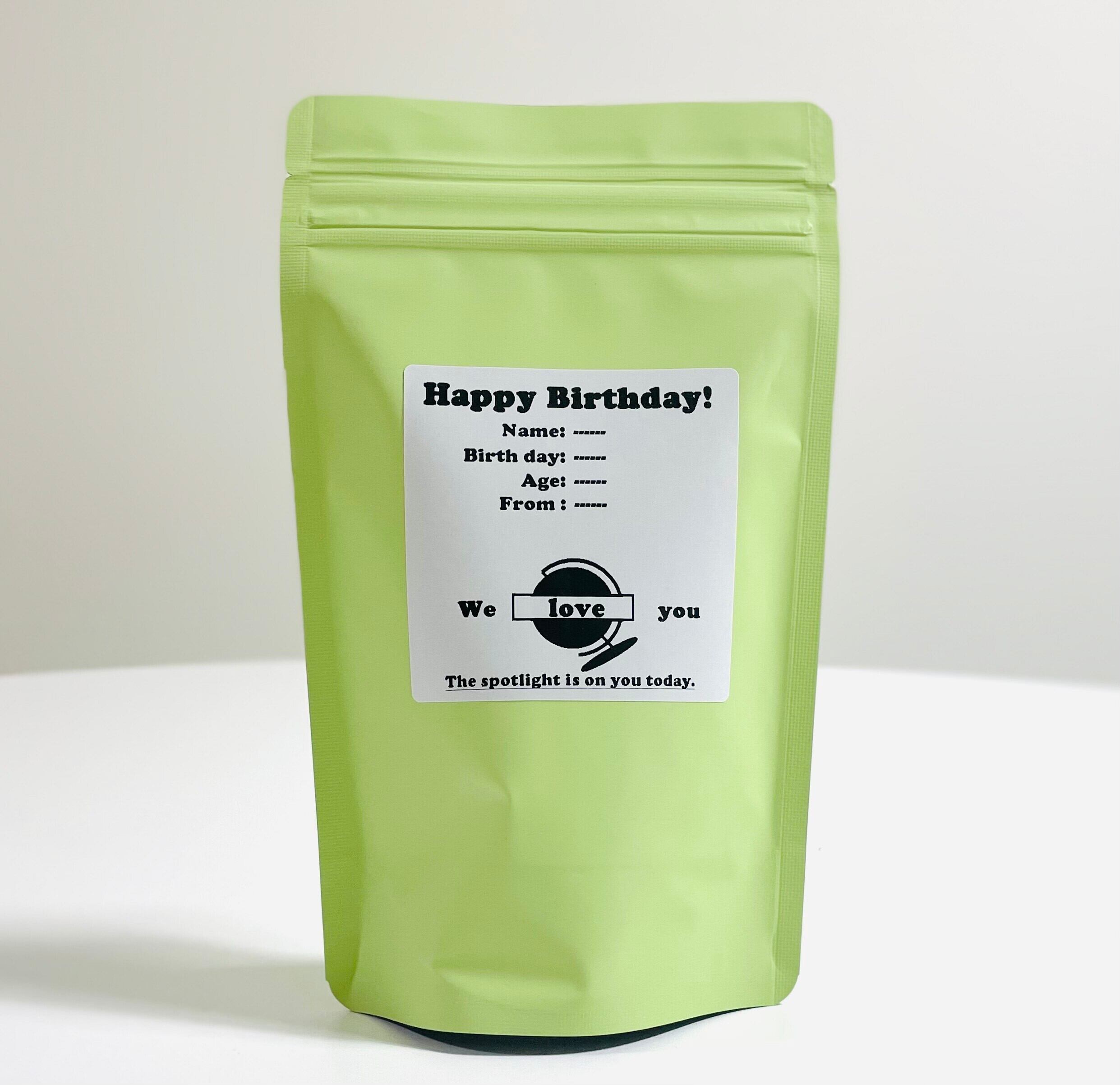 お誕生日、お祝いのプレゼント用パッケージ。 商品の色、豆、ロゴデザインなどお客様のお好みに合わせてカスタマイズ可能です。コーヒー好きのあの人に、あなたが作る最高のパッケージでお祝いを彩りませんか?